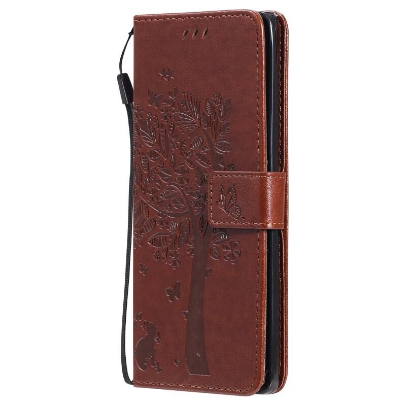 Θήκη δερμάτινη PU με σχέδιο δέντρου & γάτας, με εκτύπωση, οριζόντιο άνοιγμα, βάση στήριξης, θήκες για κάρτες, πορτοφόλι & λουρί για LG Velvet 2 Pro (Καφέ)