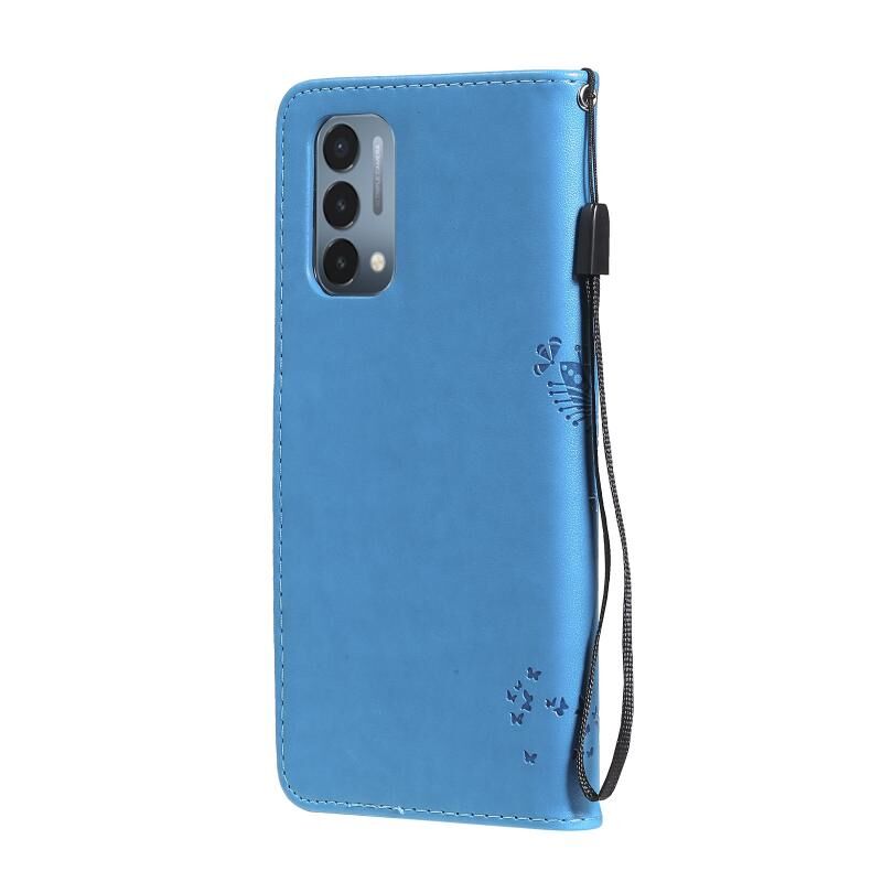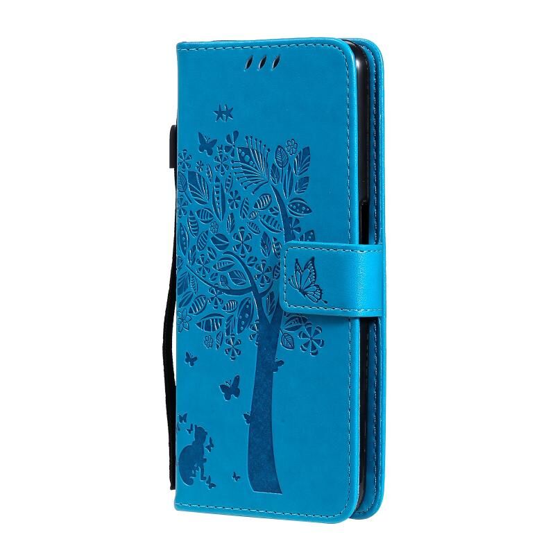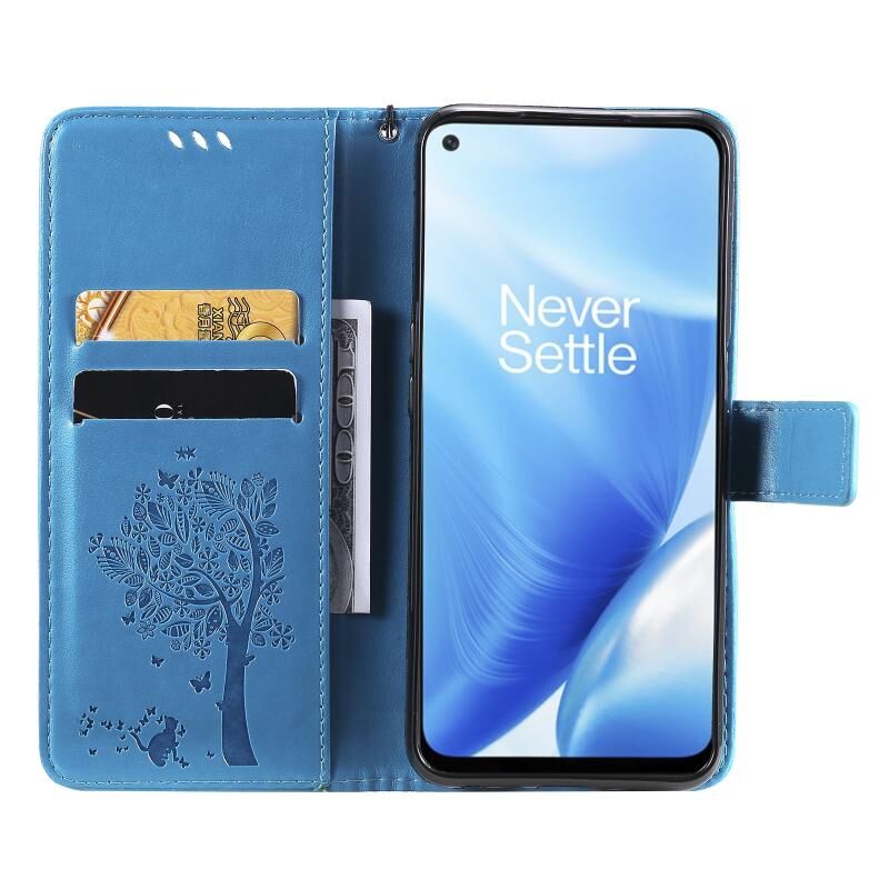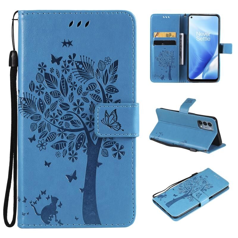 Θήκη δερματίνης PU με σχέδιο δέντρου & γάτας, εκτύπωση με θερμοτύπηση, οριζόντια αναστροφή, με βάση στήριξης & θήκες καρτών & πορτοφόλι & κορδόνι για OnePlus N200 5G (Πράσινο)