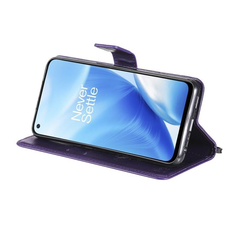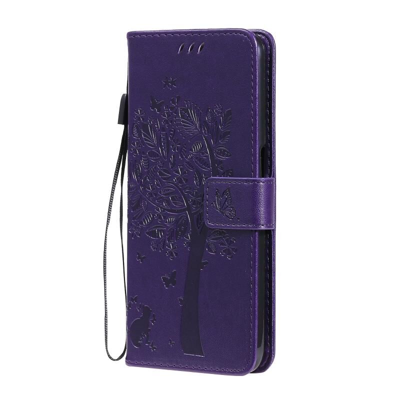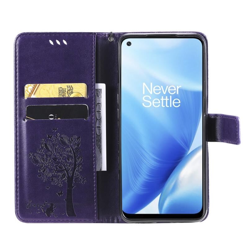 Θήκη δερματίνης PU με σχέδιο δέντρου & γάτας, εκτύπωση με θερμοτύπηση, οριζόντια αναστροφή, με βάση στήριξης & θήκες καρτών & πορτοφόλι & κορδόνι για OnePlus N200 5G (Πράσινο)