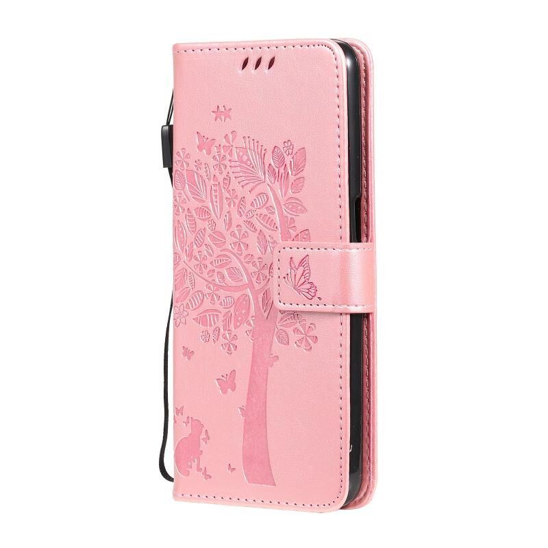 Θήκη δερματίνης PU με σχέδιο δέντρου & γάτας, εκτύπωση με θερμοτύπηση, οριζόντια αναστροφή, με βάση στήριξης & θήκες καρτών & πορτοφόλι & κορδόνι για OnePlus N200 5G (Πράσινο)