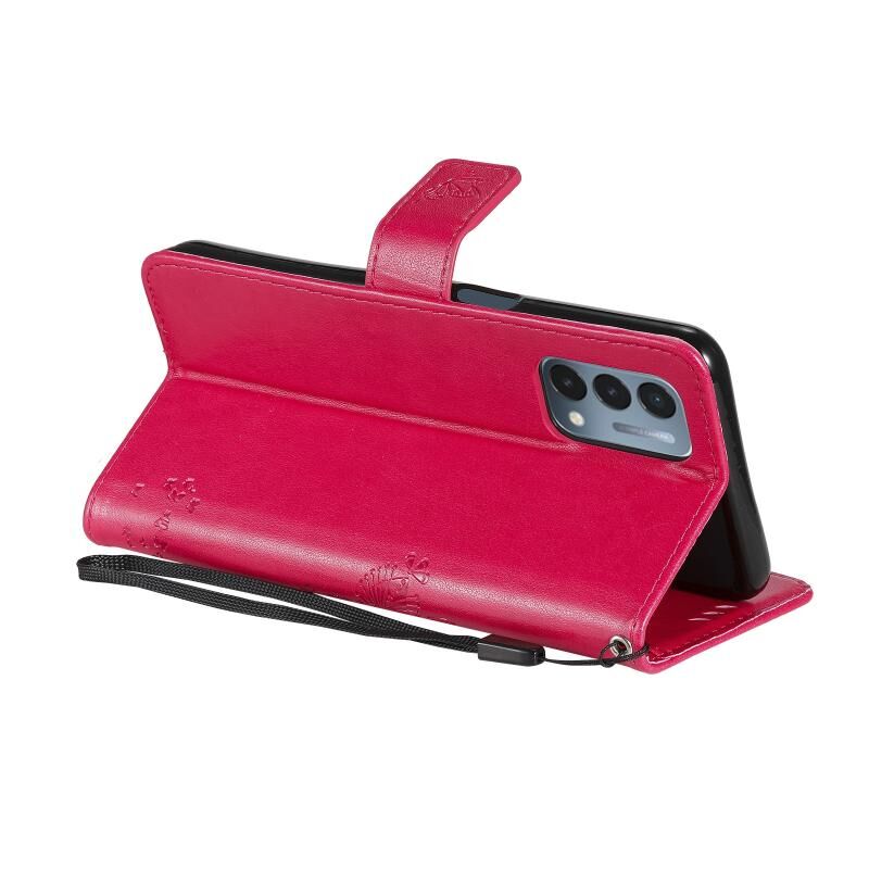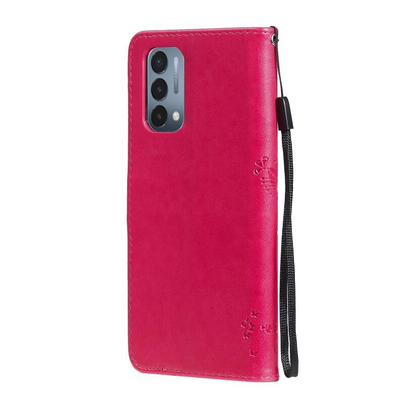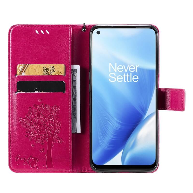 Θήκη δερματίνης PU με σχέδιο δέντρου & γάτας, εκτύπωση με θερμοτύπηση, οριζόντια αναστροφή, με βάση στήριξης & θήκες καρτών & πορτοφόλι & κορδόνι για OnePlus N200 5G (Πράσινο)