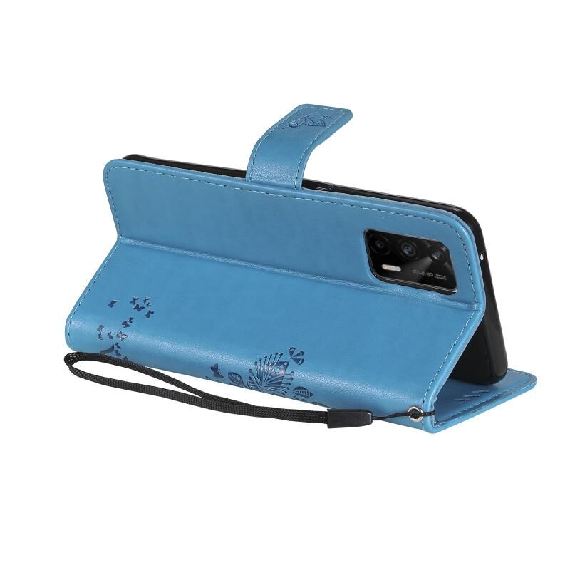 Θήκη δερμάτινη PU με σχέδιο δέντρου & γάτας, με εκτύπωση, οριζόντιο άνοιγμα, με βάση, θήκες καρτών, πορτοφόλι & λουρί για OPPO Realme GT 5G (Πράσινο)
