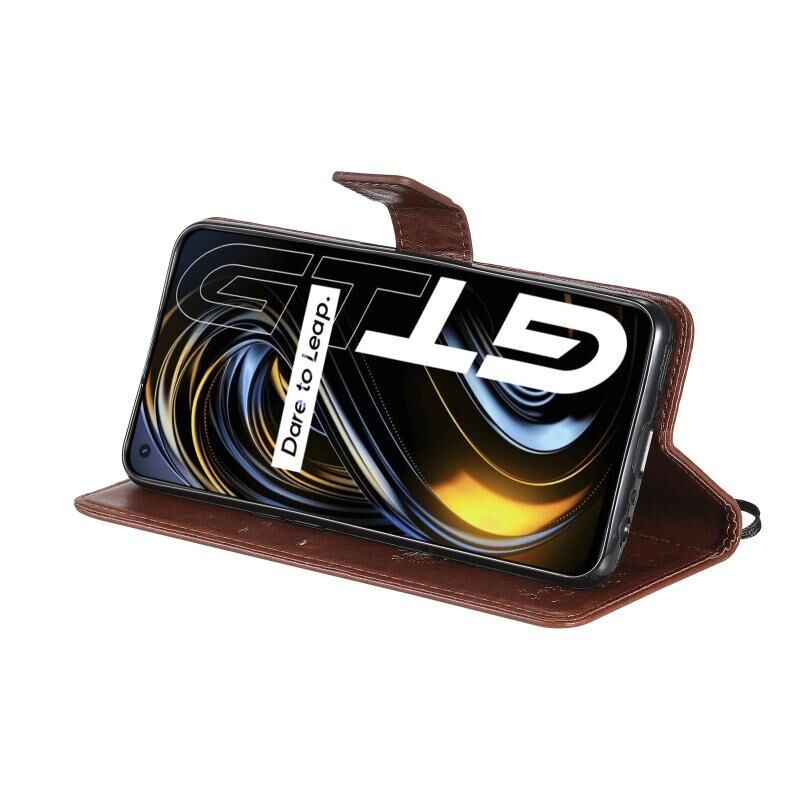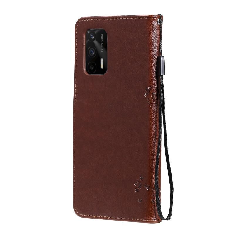 Θήκη δερμάτινη PU με σχέδιο δέντρου & γάτας, με εκτύπωση, οριζόντιο άνοιγμα, με βάση, θήκες καρτών, πορτοφόλι & λουρί για OPPO Realme GT 5G (Πράσινο)