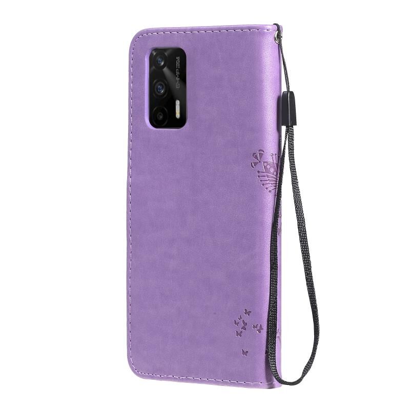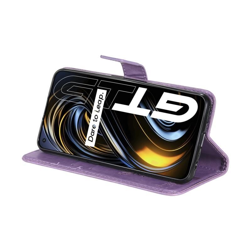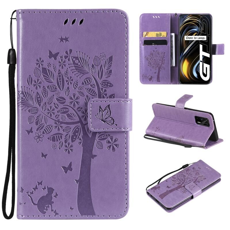 Θήκη δερμάτινη PU με σχέδιο δέντρου & γάτας, με εκτύπωση, οριζόντιο άνοιγμα, με βάση, θήκες καρτών, πορτοφόλι & λουρί για OPPO Realme GT 5G (Πράσινο)