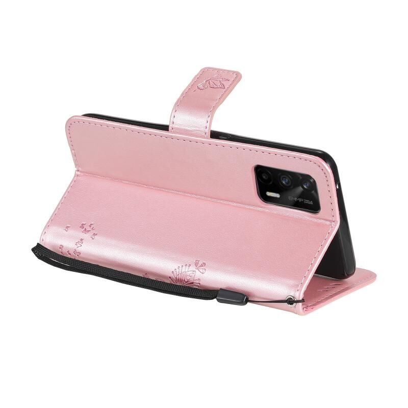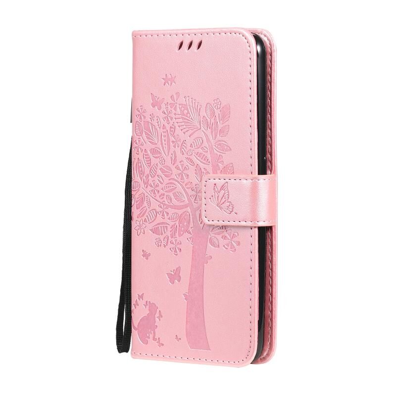 Θήκη δερμάτινη PU με σχέδιο δέντρου & γάτας, με εκτύπωση, οριζόντιο άνοιγμα, με βάση, θήκες καρτών, πορτοφόλι & λουρί για OPPO Realme GT 5G (Πράσινο)