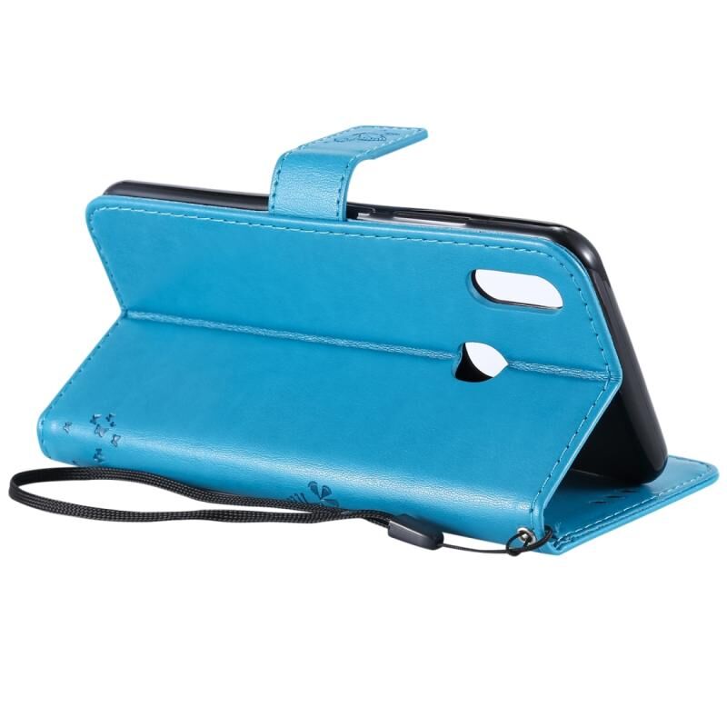 Θήκη δερμάτινη PU με σχέδιο δέντρου & γάτας, με εκτύπωση, οριζόντιο άνοιγμα, με βάση, θήκες καρτών, πορτοφόλι & λουρί για Vivo Y93 / Y91 / Y95 (Μπλε)