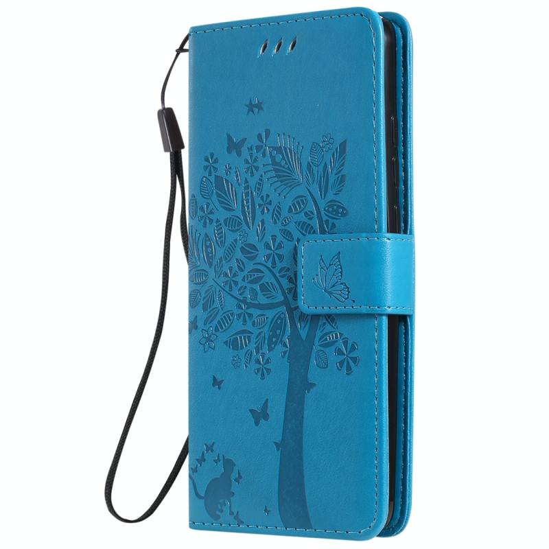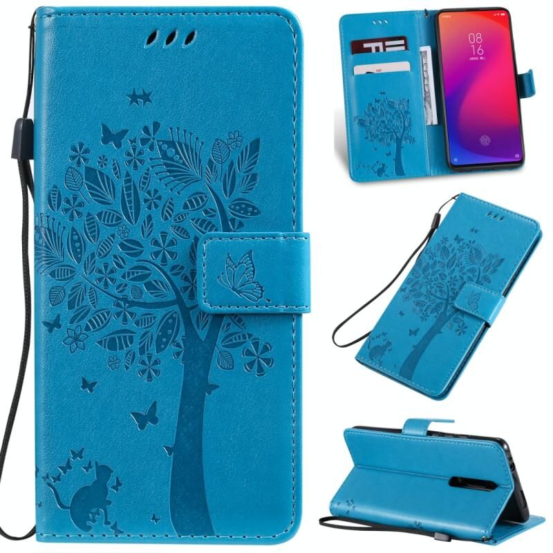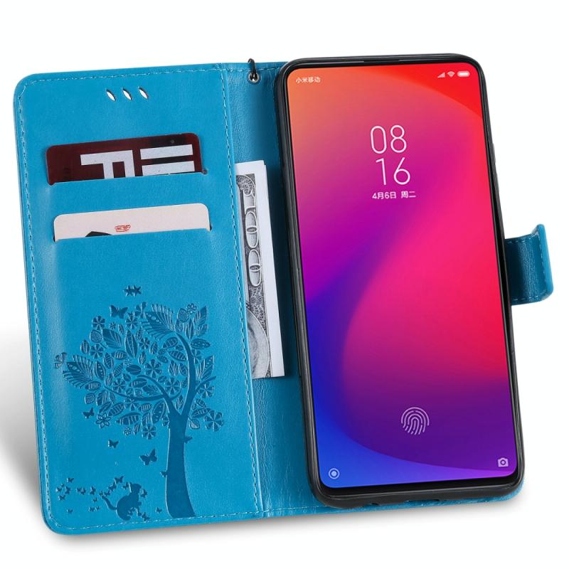Θήκη από Δερματίνη PU με Εκτύπωση σε Ύφασμα με Μοτίβο Δέντρου & Γάτας, Οριζόντιο Άνοιγμα, με Θήκη, Θήκες Καρτών, Πορτοφόλι & Λουρί για Xiaomi Mi 9T & Mi 9T Pro & Redmi K20 & K20 Pro (Μωβ)