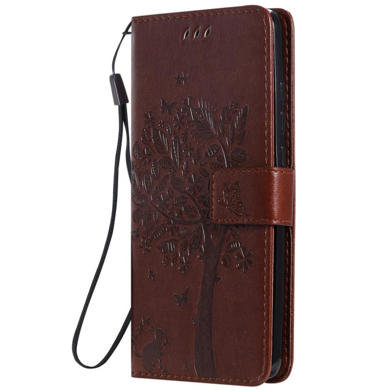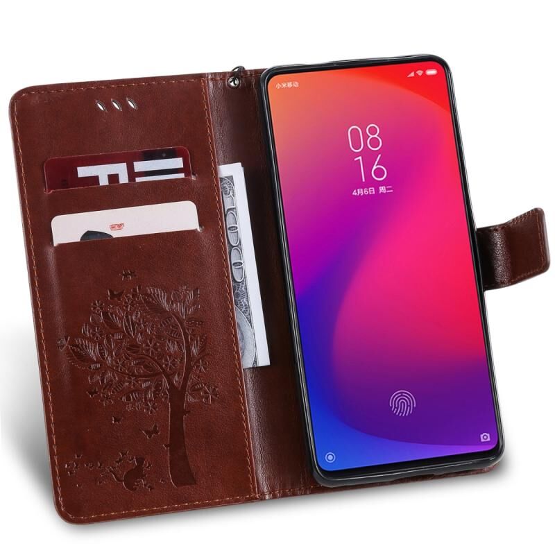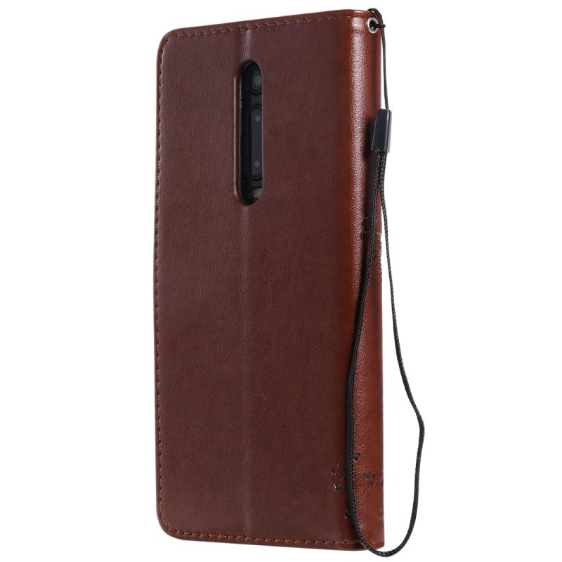 Θήκη από Δερματίνη PU με Εκτύπωση σε Ύφασμα με Μοτίβο Δέντρου & Γάτας, Οριζόντιο Άνοιγμα, με Θήκη, Θήκες Καρτών, Πορτοφόλι & Λουρί για Xiaomi Mi 9T & Mi 9T Pro & Redmi K20 & K20 Pro (Μωβ)