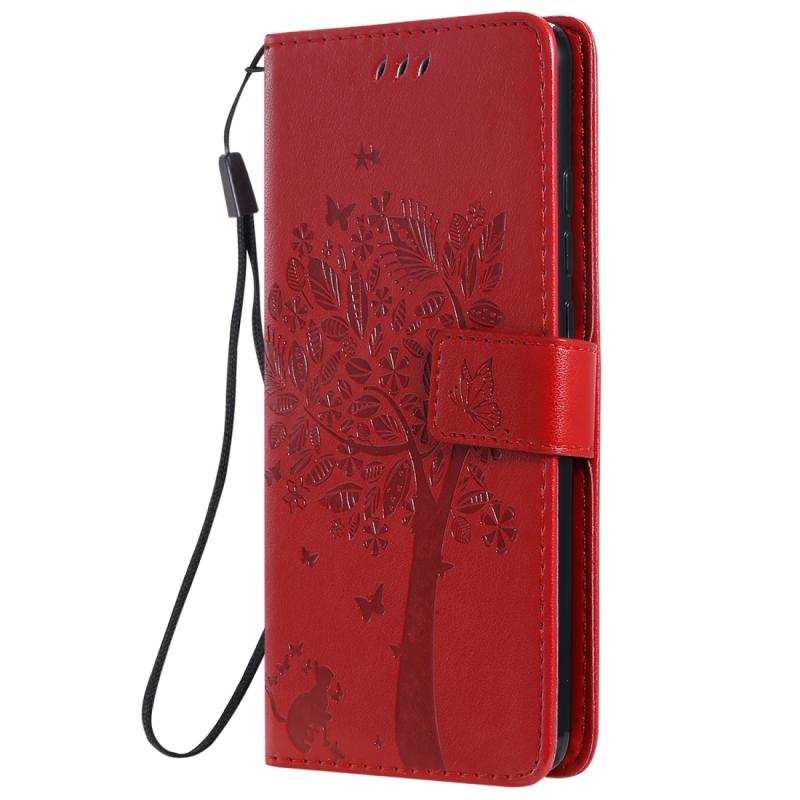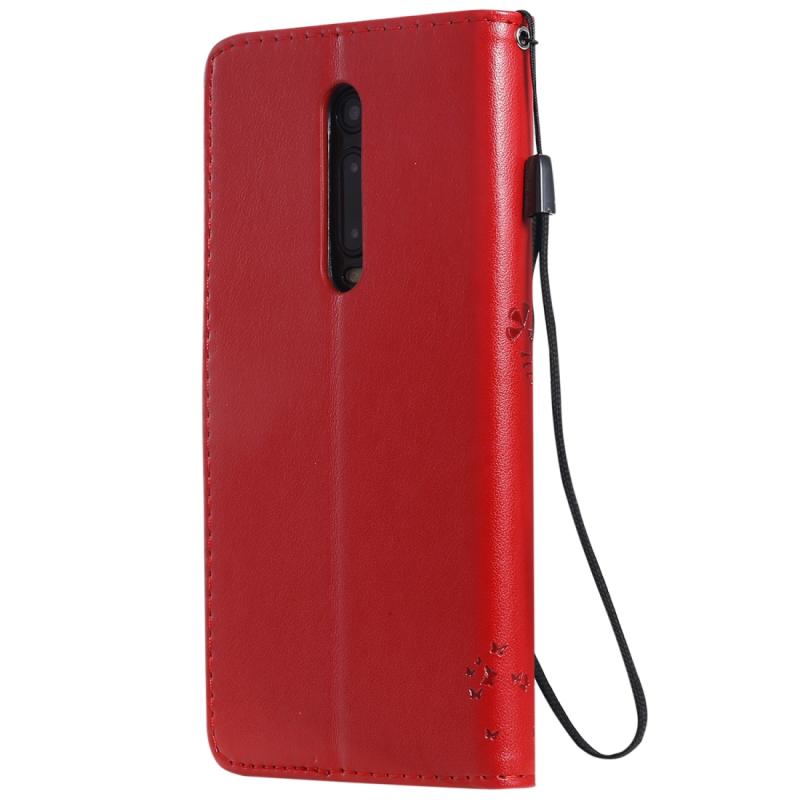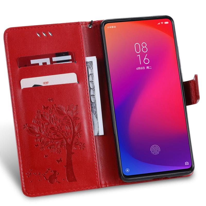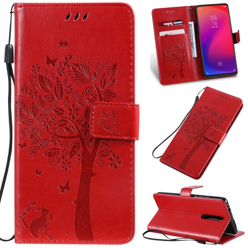 Θήκη από Δερματίνη PU με Εκτύπωση σε Ύφασμα με Μοτίβο Δέντρου & Γάτας, Οριζόντιο Άνοιγμα, με Θήκη, Θήκες Καρτών, Πορτοφόλι & Λουρί για Xiaomi Mi 9T & Mi 9T Pro & Redmi K20 & K20 Pro (Μωβ)