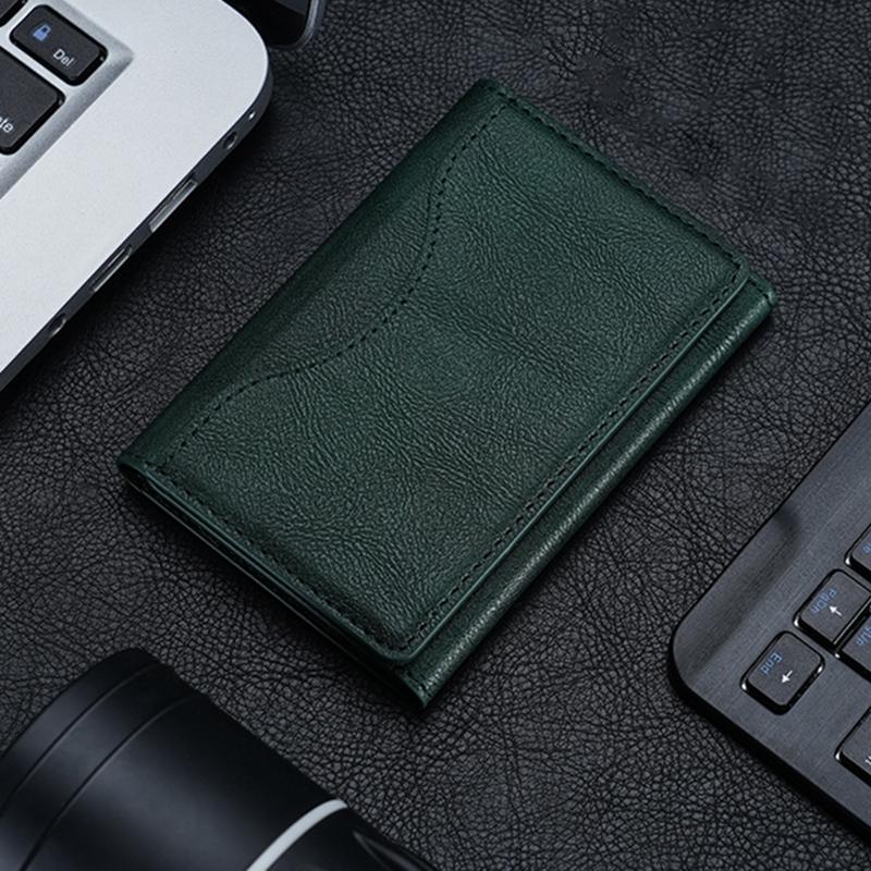 Tri-fold Wallet Phone Holder MagSafe Leather Card Bag(Green)