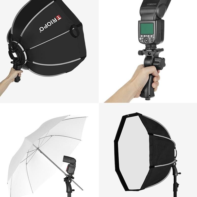 3. Can be handheld, the handle is angle adjustable; Can be mounted on light stand.
