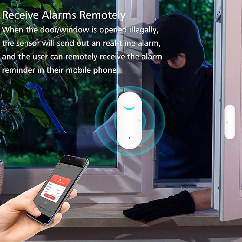 No complicated installation tools are required; just a few steps to install the sensor with double-sided tape or screws (included), and download the app Tuya or Smart Life from GooglePlay or App Store to add the device to detect the status of your doors/windows