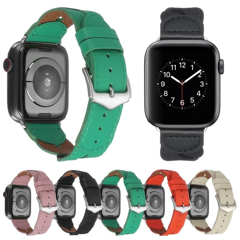 Λουρί ρολογιού από γνήσιο δέρμα με πλεκτή ραφή για Apple Watch Series 9&8&7 41mm / SE 3&SE 2&6&SE&5&4 40mm / 3&2&1 38mm (Ροζ)