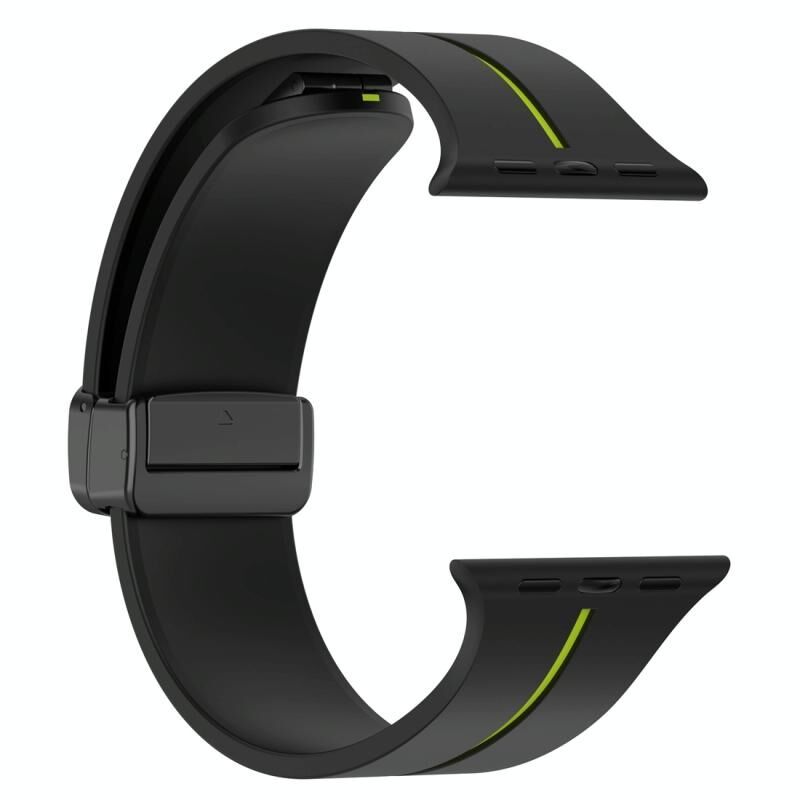 Λουράκι για Apple Watch 42mm, Διπλού Χρώματος, Διπλού Κλιπ, Σιλικόνης (Μαύρο + Λάιμ)