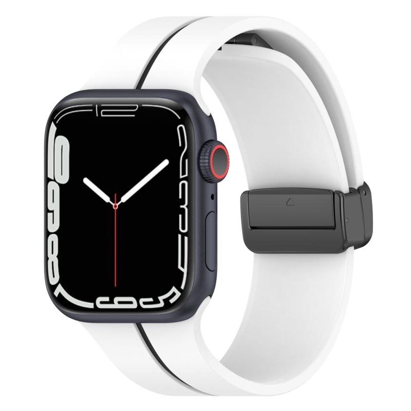 Λουράκι για Apple Watch SE 2022 44mm, Διπλής Χρώματος με Αγκράφα Διπλώματος, Σιλικόνης (Λευκό+Μαύρο)