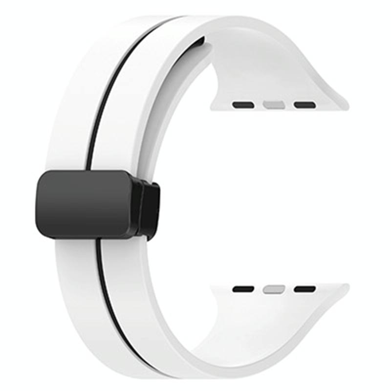 Λουράκι για Apple Watch SE 44mm, Διπλού Χρώματος, Αναδιπλούμενη Αγκράφα, Σιλικόνης (Λευκό+Μαύρο)