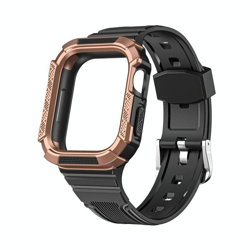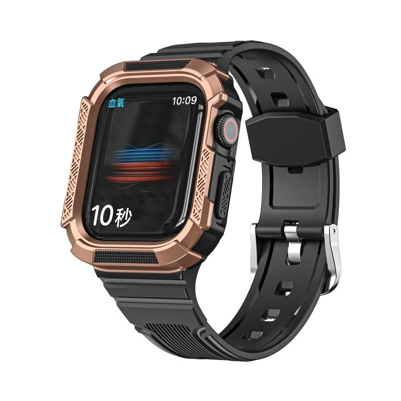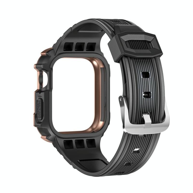 Two-color Integrated Watch Band For Apple Watch Series 7 45mm / 6&SE&5&4 44mm(Black + Bronze Frame)