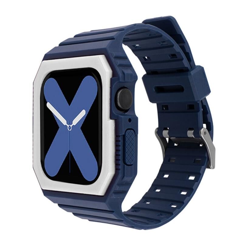 Two-color Integrated Watch Band For Apple Watch Series 8&7 45mm / SE 2&6&SE&5&4 44mm / 3&2&1 42mm(Blue White)
