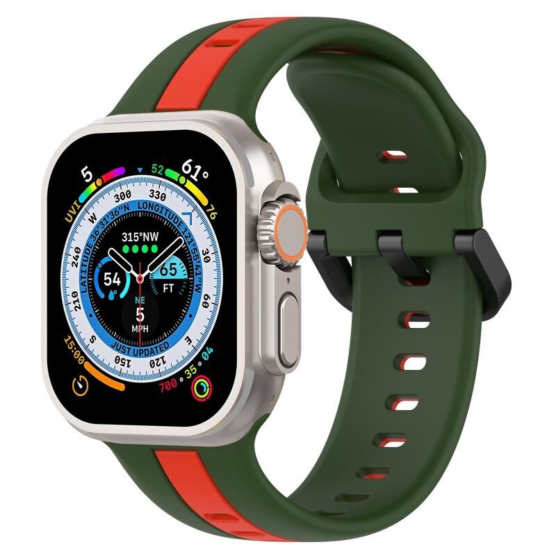 Λουράκι για Apple Watch Ultra 49mm από σιλικόνη με αγκράφα διπλού χρώματος (Πράσινο Στρατού + Κόκκινο)