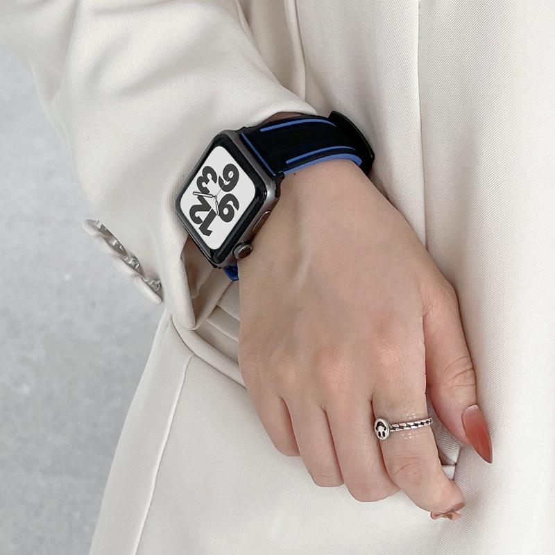 Two-color Silicone Hydraulic Buckle Watch Band For Apple Watch Ultra 49mm&Watch Ultra 2 49mm / Series 9&8&7 45mm / SE 3&SE 2&6&SE&5&4 44mm / 3&2&1 42mm(Black)