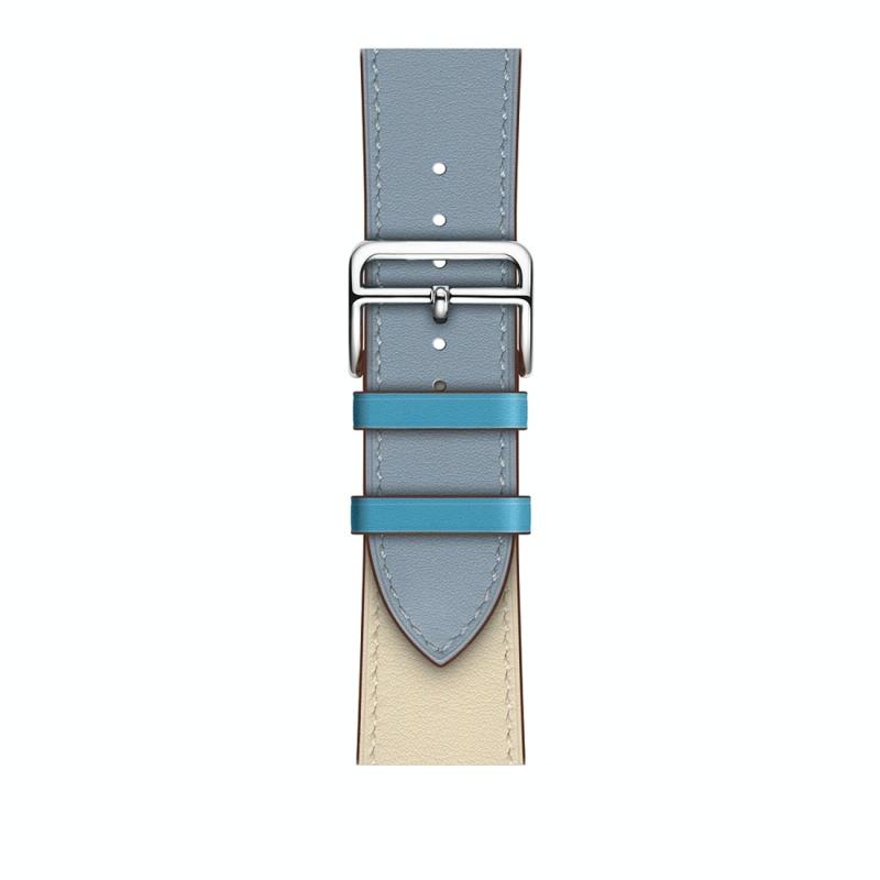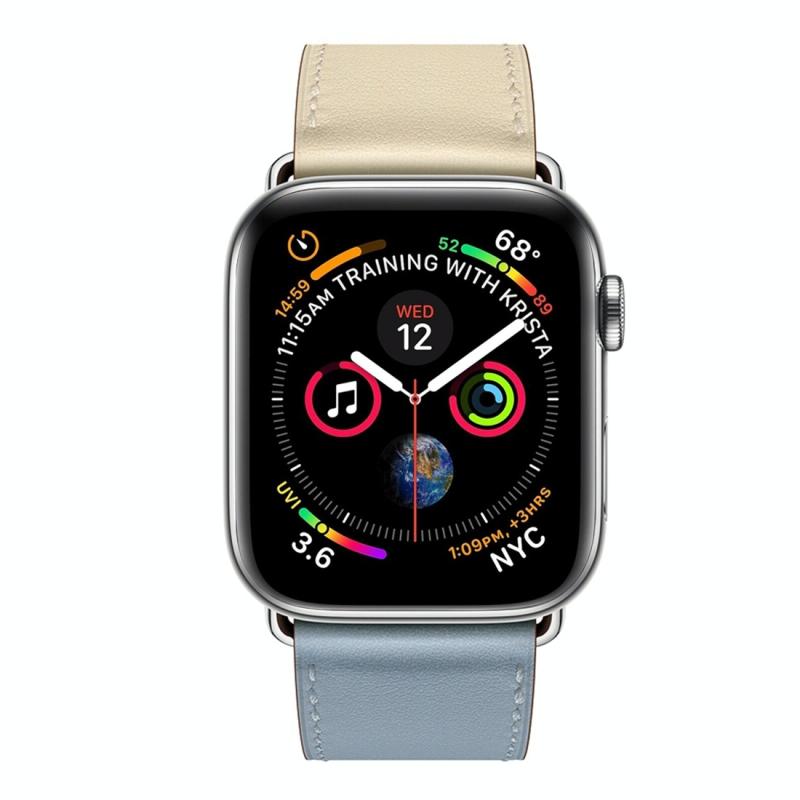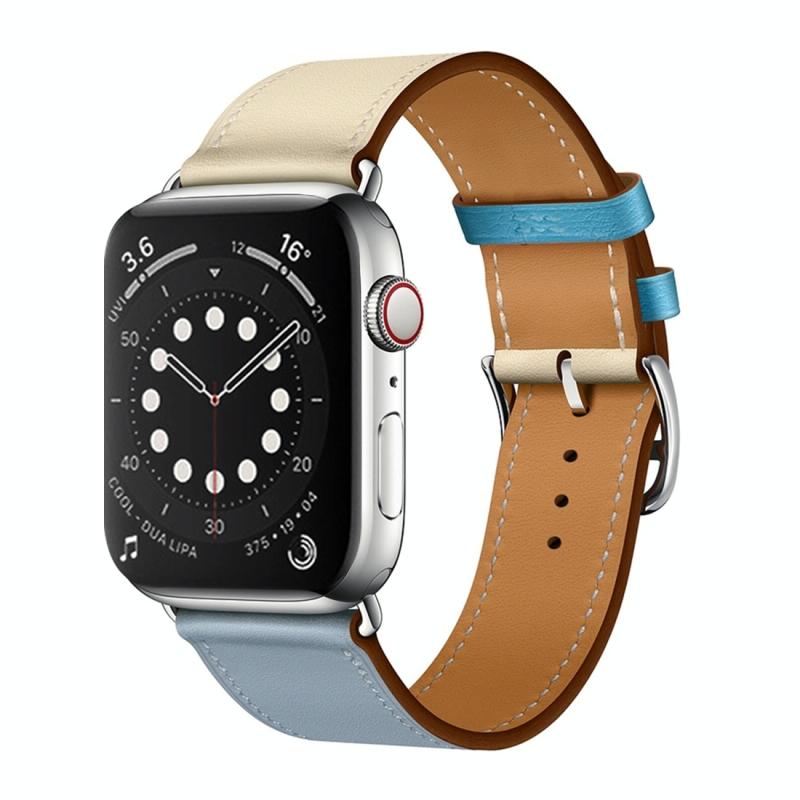 Λουράκι ρολογιού για Apple Watch Series 3 & 2 & 1 38mm, Δερμάτινο με μονό βρόχο και δύο χρώματα, Χρώμα: Γκρι Μπλε + Ροζ Λευκό + Γαλάζιο Πάγου