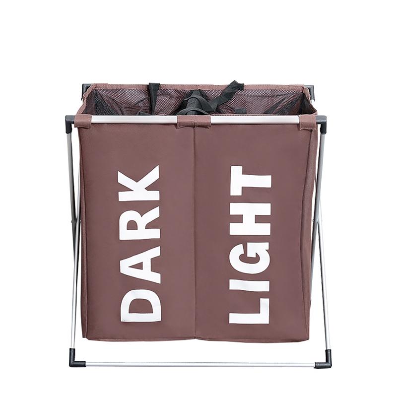 Two Grid Oxford Cloth Laundry Basket Dirty Clothes Waterproof Storage Bag Foldable Basket Bathroom Hamper(Coffee)