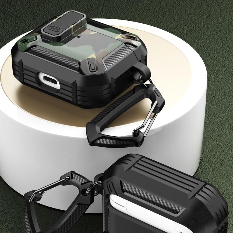 Θήκη ακουστικών με εκτύπωση δύο χρωμάτων, κλείδωμα με διακόπτη & γάντζο για AirPods 1/2 (Αστρικός Ουρανός)