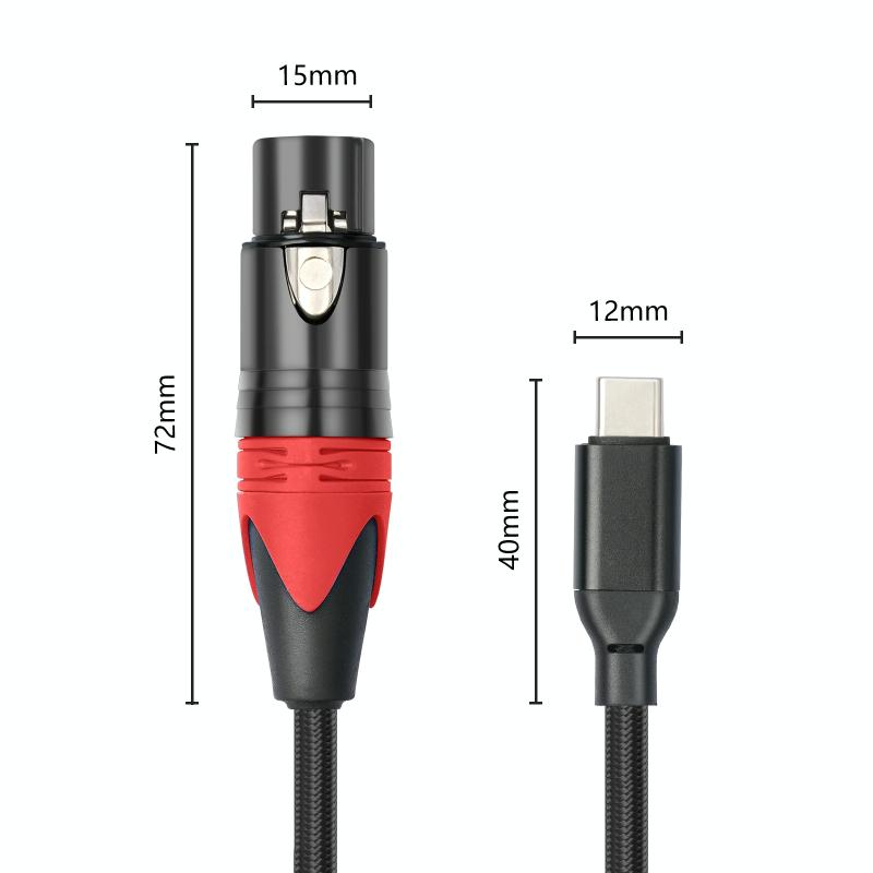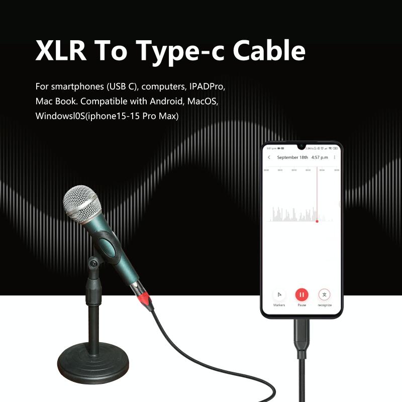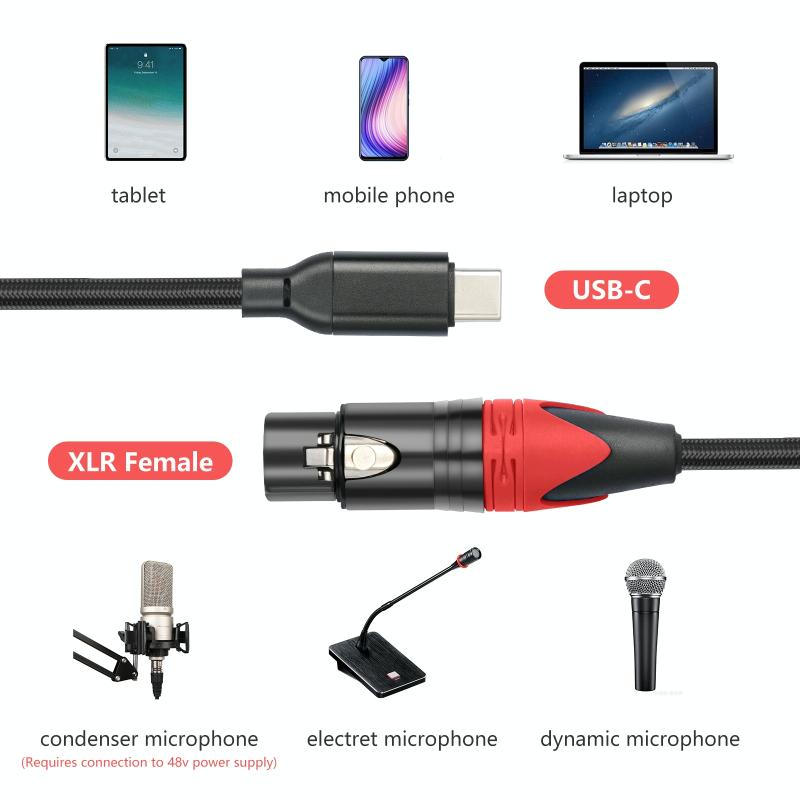 TY03RE Type-C Male to XLR Female Audio Cable for Dynamic Microphone, Length:2m(Black)