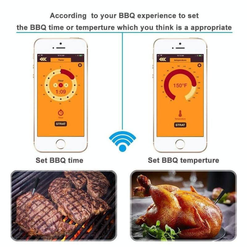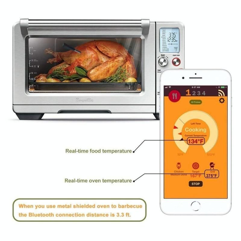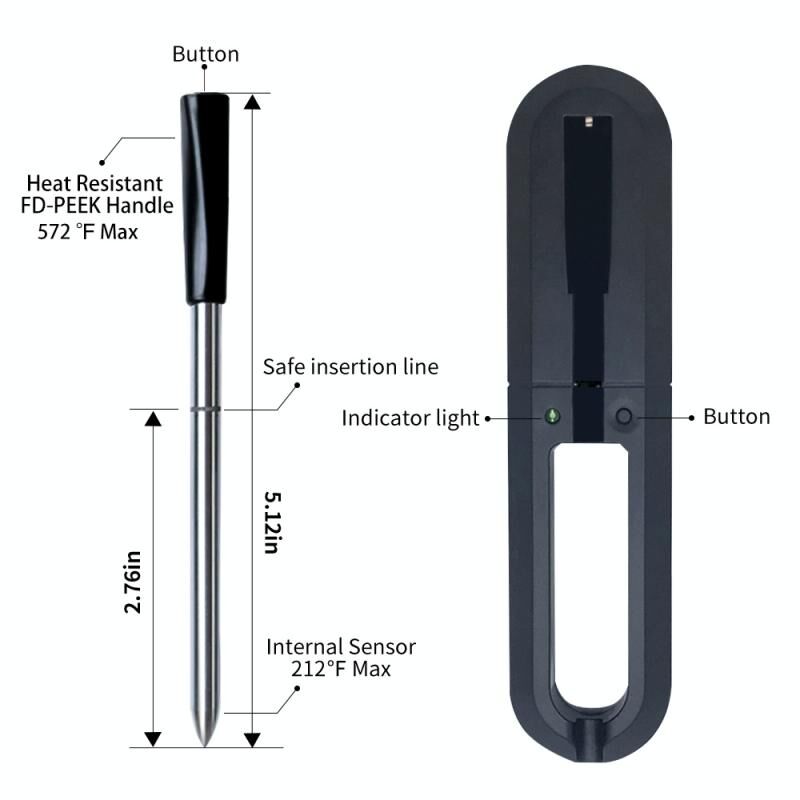 1. Χρησιμοποιεί μοναδικά μικροηλεκτρονικά και τεχνολογία ακριβείας στην κατασκευή. Τα δεδομένα μέτρησης θερμοκρασίας του ανοξείδωτου αισθητήρα μεταδίδονται ασύρματα στο smartphone. Απαλλάσσει από το χοντρό και μακρύ καλώδιο σύνδεσης υψηλής θερμοκρασίας των παραδοσιακών θερμομέτρων μπάρμπεκιου. Είναι πολύ βολικό για τους χρήστες. Ιδιαίτερα κατάλληλο για κλειστούς ηλεκτρικούς φούρνους και φούρνους.