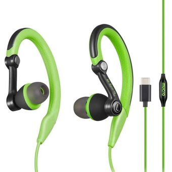 Ακουστικά ενδοωτικά με άγκιστρο αυτιού, καλωδιακά, στερεοφωνικά, τύπου C για τρέξιμο και γυμναστήριο (Πράσινα) (Mucro)