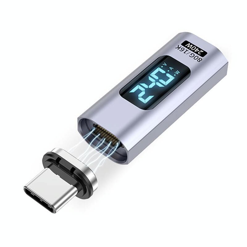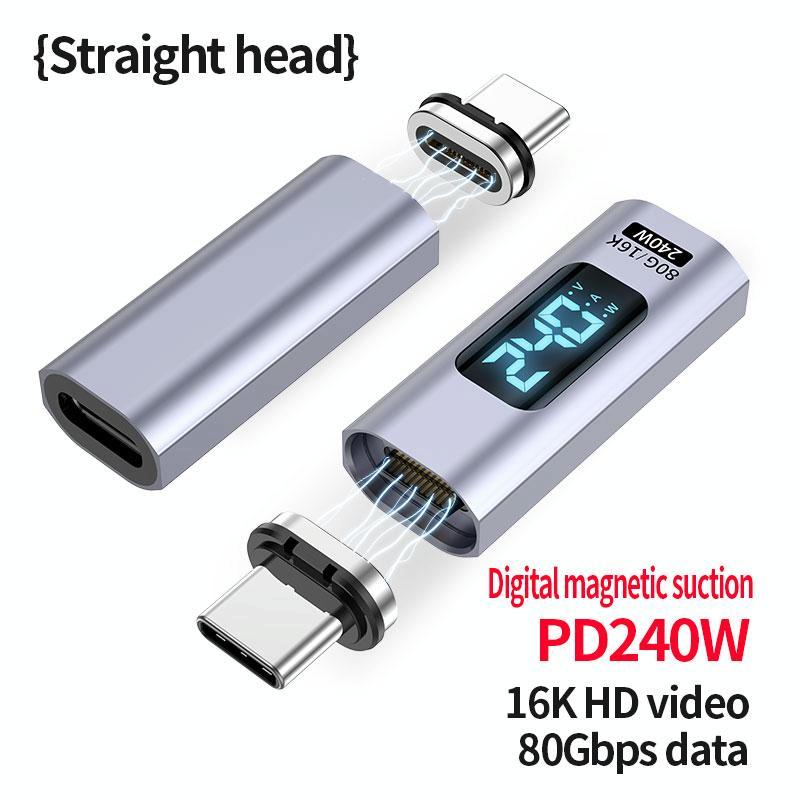 Type-C Male to Female PD240W 80Gbps 60K Digital Magnetic Suction Adapter, Style:Straight Head(Space Grey)