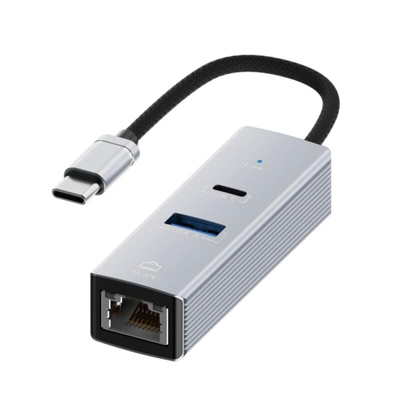 Type-C to Type-C RJ45 USB-A HUB Expand Converter(Silver)