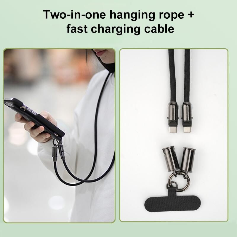 Καλώδιο δεδομένων σιλικόνης Type-C σε Type-C, αντιχαμένο λουρί crossbody για τηλέφωνο, Μήκος: 1,2μ (Μωβ)