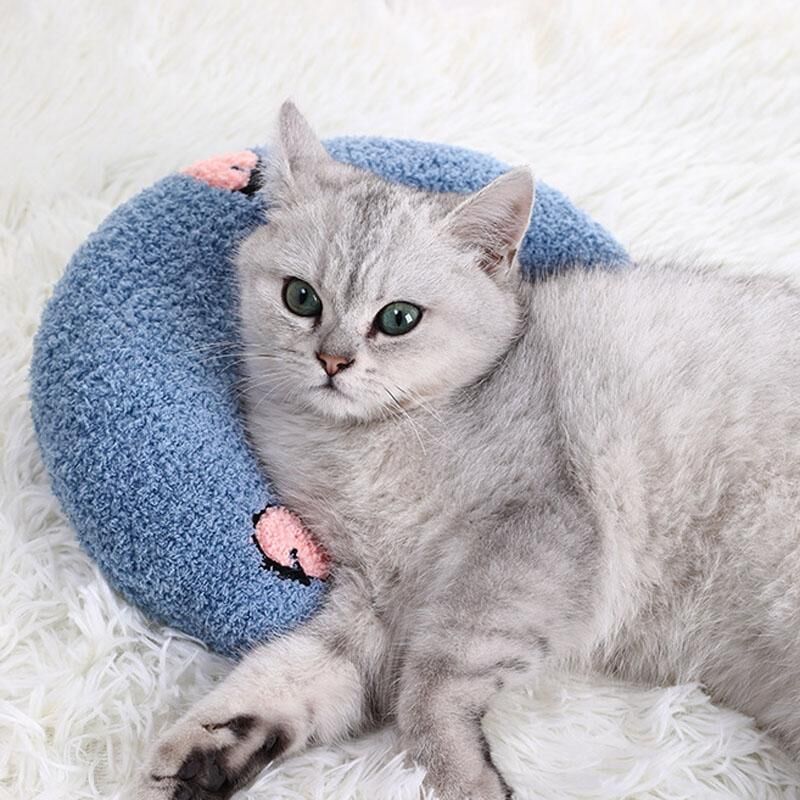 Μαξιλάρι σε σχήμα U για γάτες κατοικίδιων ζώων σκυλιών που κοιμούνται μαξιλάρι μαξιλαριού (μπλε)