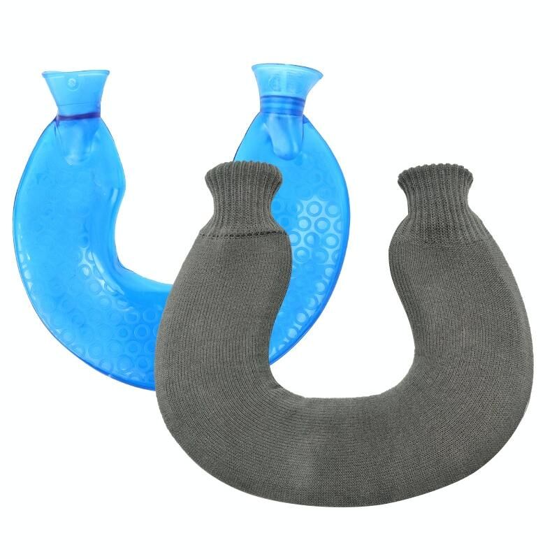 U-σχήμα PVC ζεστό συμπίεση ώμου και λαιμού εκρηκτικός-ανθεκτική ένεση νερού ζεστό νερό τσάντα (μπλε + γκρι πλεκτό)