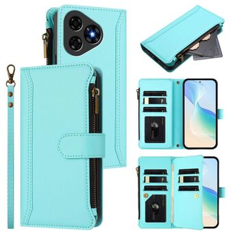 Για Ulefone Note 20 Pro Μαγνητικό Κλείσιμο 9 Θήκες Κάρτας Δερμάτινη Θήκη με Φερμουάρ και Λουρί Χεριού (Τουρκουάζ)