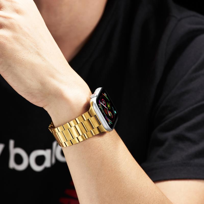 Εξαιρετικά λεπτό μεταλλικό λουρί ρολογιού τριών χαντρών για Apple Watch Ultra 49mm & Watch Ultra 2 49mm / Series 9 & 8 & 7 45mm / SE 3 & SE 2 & 6 & SE & 5 & 4 44mm / 3 & 2 & 1 42mm (Χρυσός)