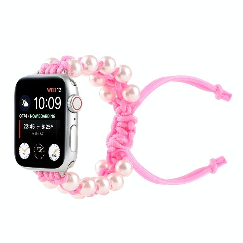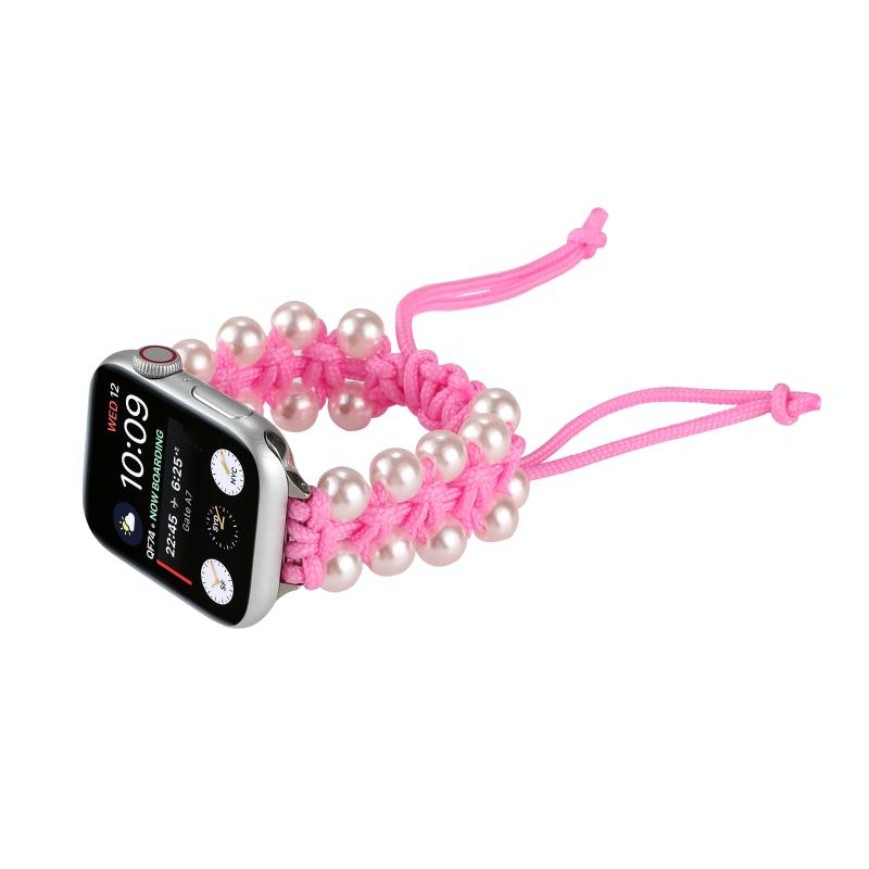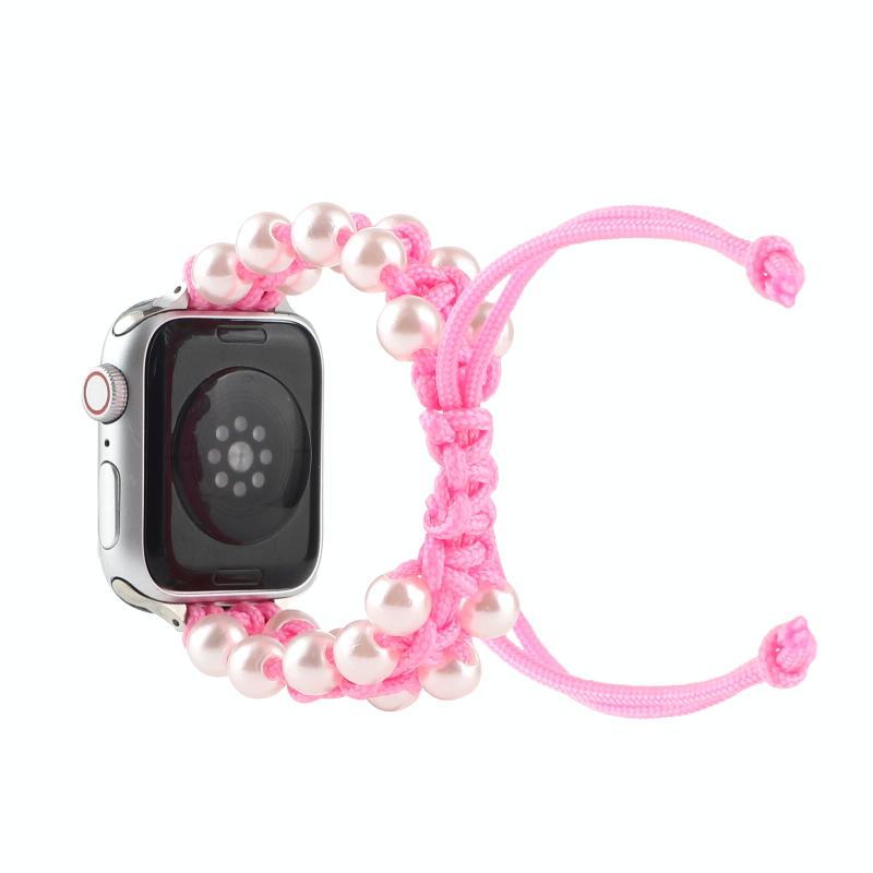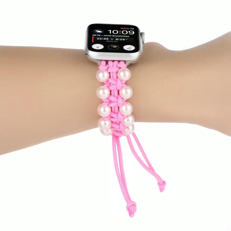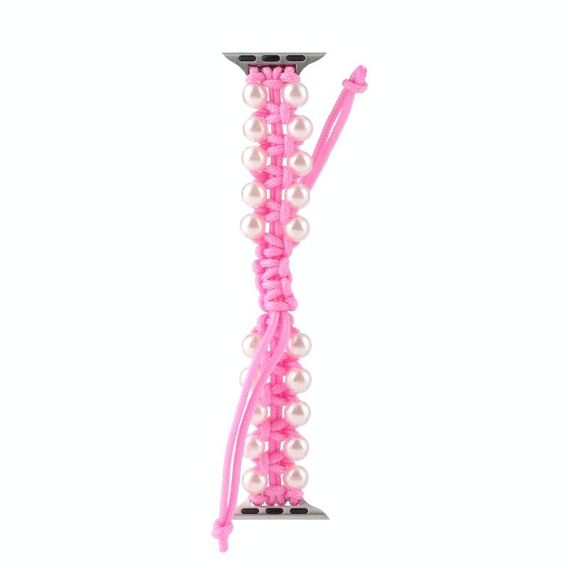 Κορδόνι ρολογιού από νάιλον με χάντρες για Apple Watch Series 9&8&7 41mm / SE 3&SE 2&6&SE&5&4 40mm / 3&2&1 38mm (ρόζ)