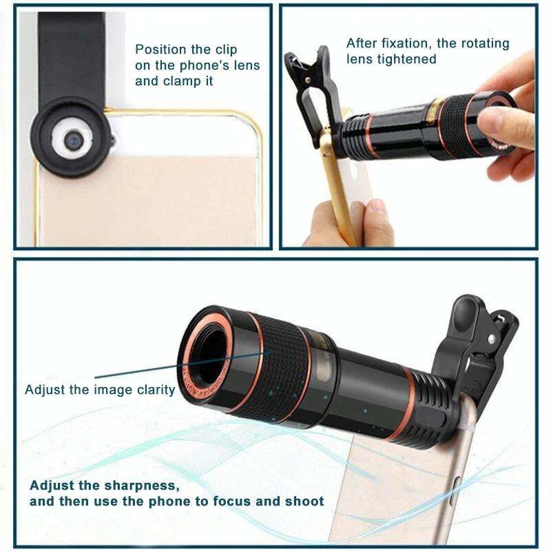 1. Universal mobile telephoto lens 12X telescope lens and tripod