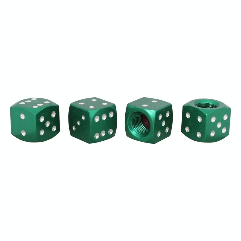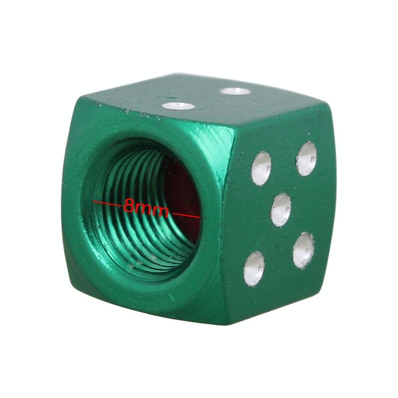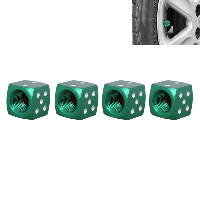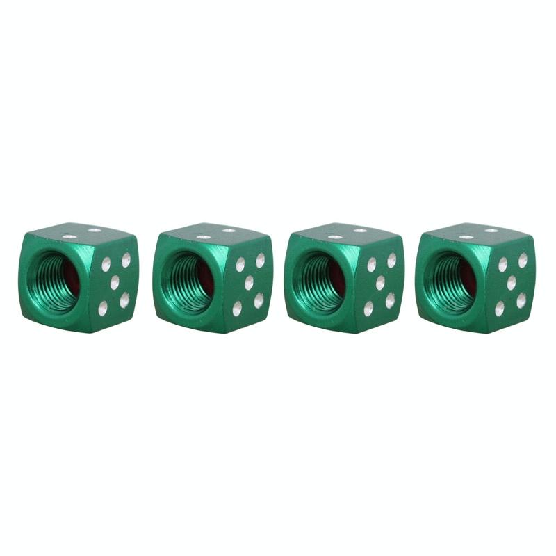 Universal 8mm Dice Style Aluminium Alloy Car Tire Valve Caps, Pack of 4(Green)