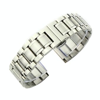 Μπρασελέ από ατσάλι 24mm με κούμπωμα πεταλούδας, πέντε χάντρες, unisex, στερεό λουρί ρολογιού από ανοξείδωτο ατσάλι, Χρώμα: Ασημί