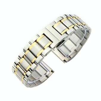17mm Steel Bracelet Butterfly Buckle Five Beads Unisex Stainless Steel Solid Watch Strap, Color:Intermediate Gold