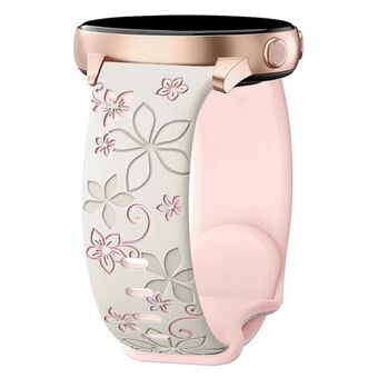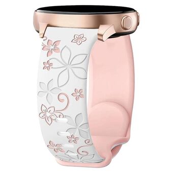 20mm Two Color Bauhinia Embossed Silicone Watch Band(White Pink)