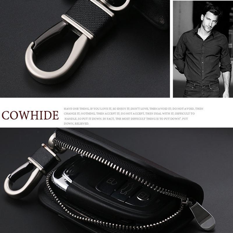 Universal Car Key Case Car Key Cowhide Leather Protective Cover(Dark Green)