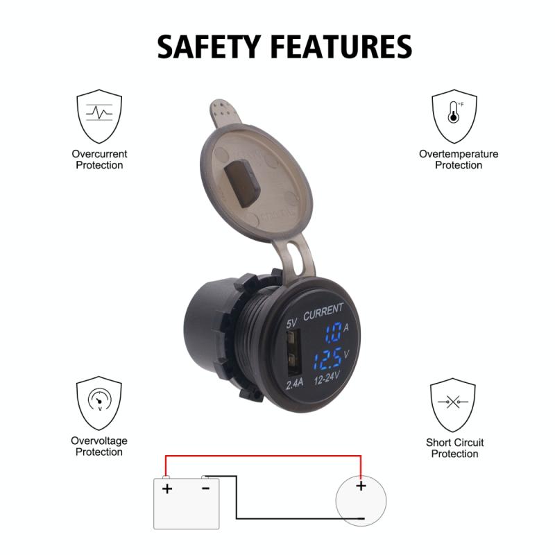 3. The product is equipped with 2.4AUSB, which can be used for power supply of mobile phones, tablets and GPS.