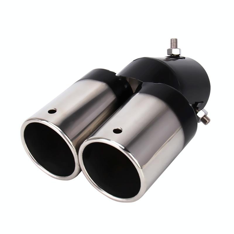 Universal Car Styling Stainless Steel Curved Double Outlets Exhaust Tail Muffler Tip Pipe(Black)