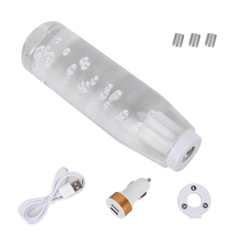 4. Package includes: 1*Universal 15cm LED Shift Knob, 1*Charging Cable, 1*Dual USB charger, 3*Adapter.