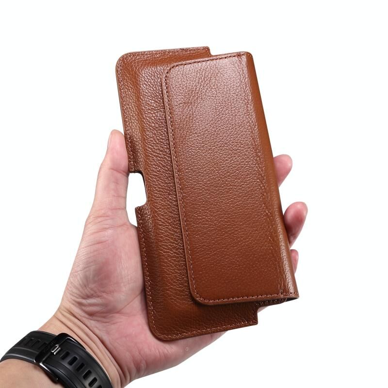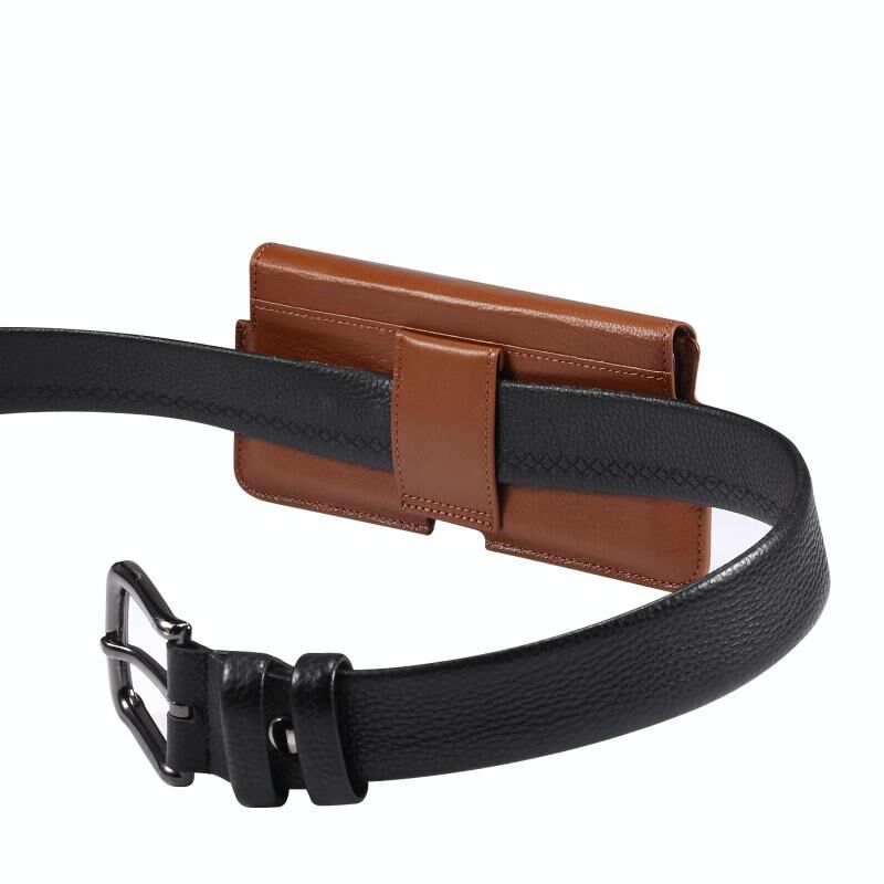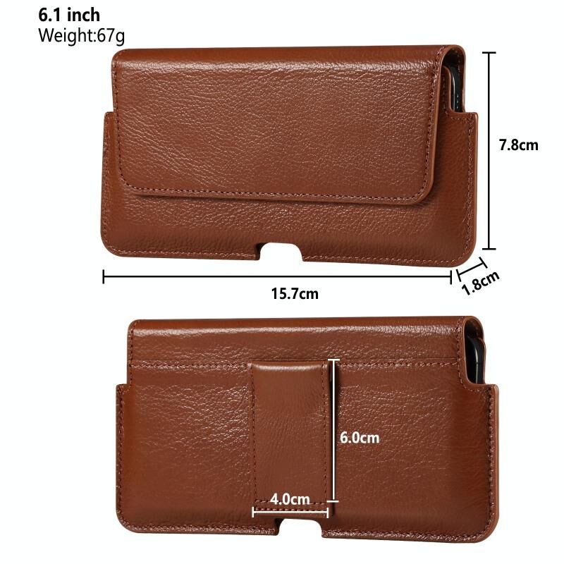 Universal Cow Leather Horizontal Mobile Phone Leather Case Waist Bag For 6.1 inch and Below Phones(Brown)