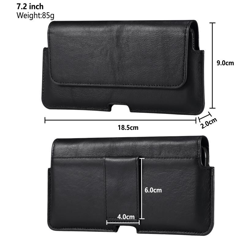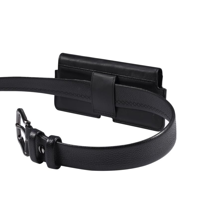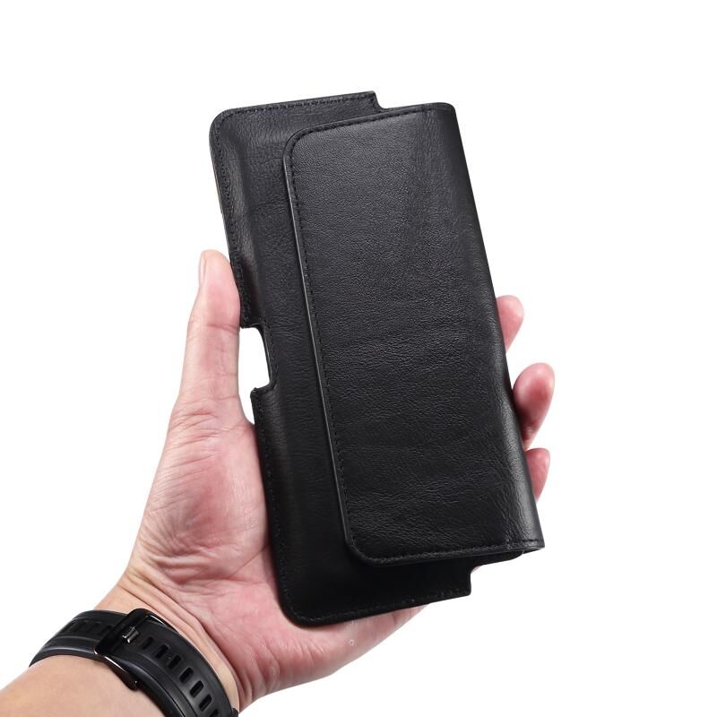 Καθολική Δερμάτινη Θήκη Κινητού Τηλεφώνου από Δέρμα Αγελάδας, Οριζόντια, Τσάντα Μέσης για Τηλέφωνα έως 7,2 ίντσες (Μαύρο)
