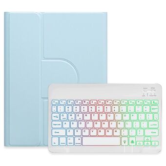 For iPad Air 2022 / iPad Pro 11 2021 Three-color Backlight White 360 Degree Rotatable Bluetooth Keyboard Leather Case(Sky Blue)